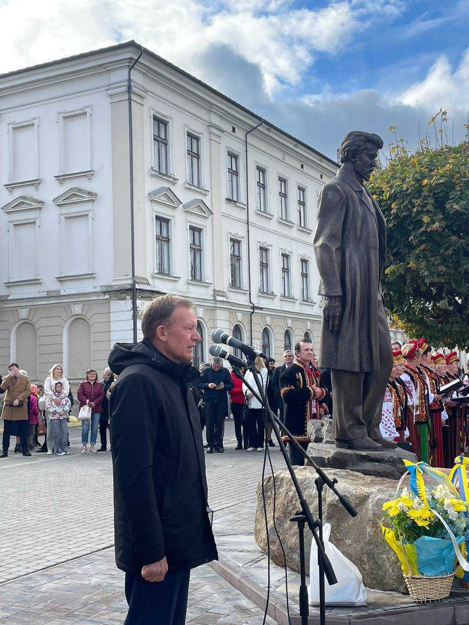 Саме 1 листопада, у середмісті Коломиї, на подвір’ї колишньої гімназії, в якій вчився майбутній письменник, відбулася знаменна подія – відкриття пам’ятника Василю Стефанику, видатному землякові, який народився і проживав у селі Русів. Автором майстерно виконаної скульптури є Михайло Дмитрів.