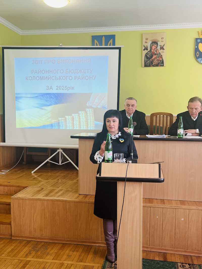 Депутати затвердили звіт про виконання районного бюджету Коломийського району за 2025 рік та внесли зміни до районного бюджету на 2026 рік, зарахувавши до нього трансферти з інших місцевих бюджетів та розподіливши кошти вільного залишку з урахуванням актуальних потреб та забезпечення виконання місцевих програм. Доповіла бюджетні питання заступниця голови РДА Ганна Кравчук.